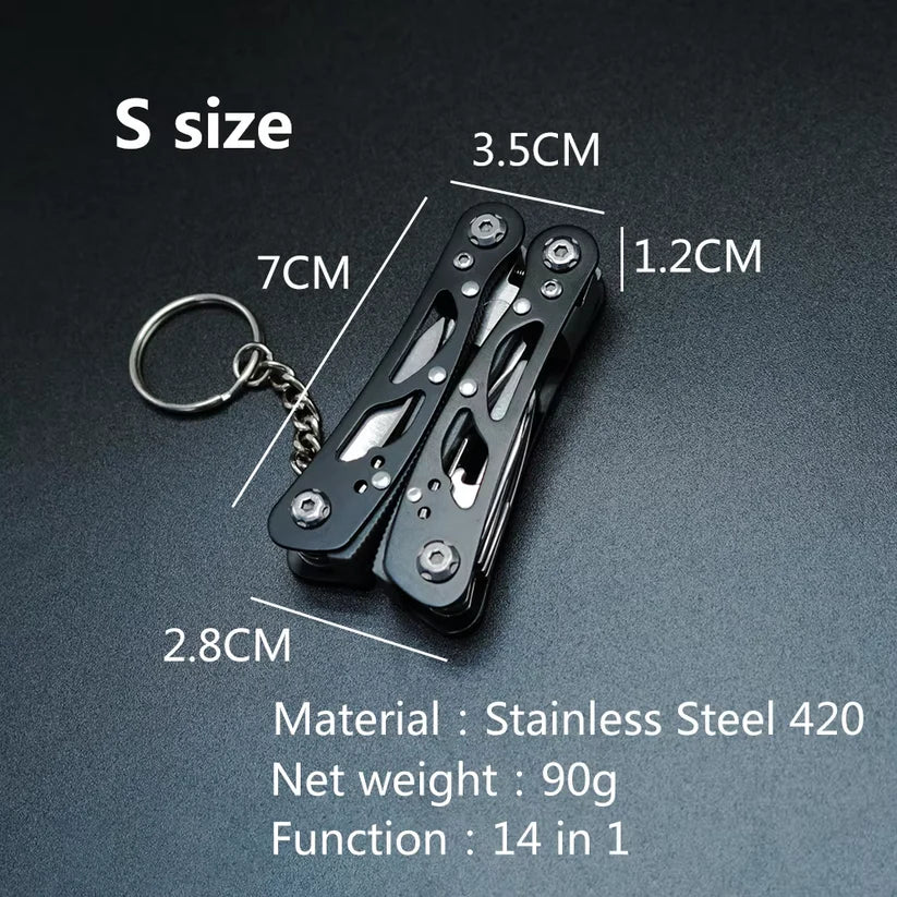 पोर्टेबल फोल्डिङ डिजाइन – तपाईं जहिले पनि आफ्नो झोला वा जेबमा लिएर सजिलै लिएर जान सक्नुहुन्छ। बहुउपयोगी चक्कु, स्क्रू ड्राइभर र प्लायर्स सबै एकै उपकरणमा।