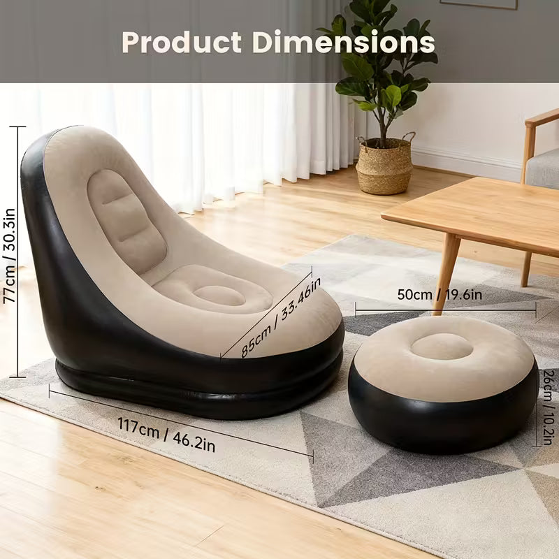 adult inflatable recliner sofa with   stool heavy duty portable folding   space saving indoor outdoor lounge chair for living room camping travel balcony easy setup storage no   red Product details 10