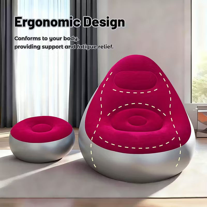 adult inflatable recliner sofa with   stool heavy duty portable folding   space saving indoor outdoor lounge chair for living room camping travel balcony easy setup storage no   red Product details 5