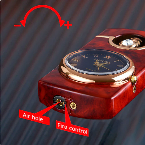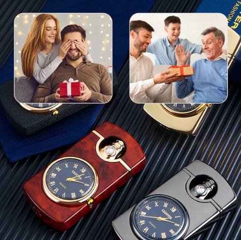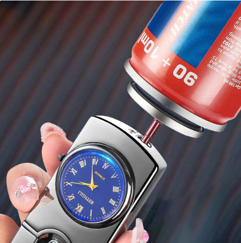 अनौठो २-इन-१ घडी र लाइटर: यो नवप्रवर्तनात्मक डिजाइनले पूर्ण रूपमा काम गर्ने हाते घडीलाई बिल्ट-इन हावारोधी ब्यूटेन लाइटरसँग संयोजन गर्छ, जसले एकै समयमा सुविधा र बोल्ड फेशन स्टेटमेन्ट प्रदान गर्छ।