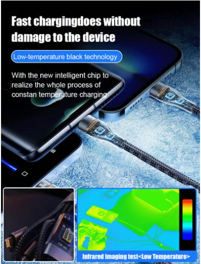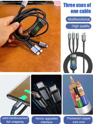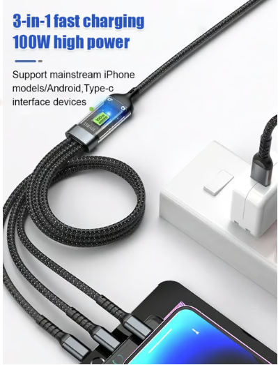 पारदर्शी चम्किलो सुपर फास्ट चार्जिङ ३-इन-१ डाटा केबल