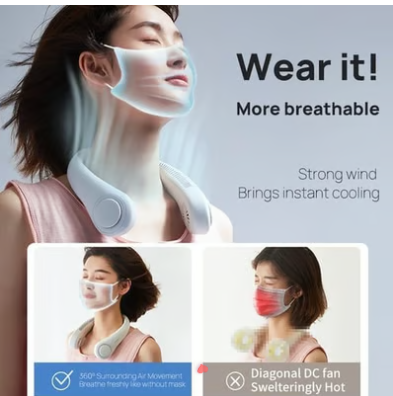 यो नयाँ प्रकारको घाँटी फ्यानलाई केवल घाँटीमा राख्दा तपाईंका हातलाई बाधा नपारी हावा दिन्छ। पंखा बिना पंख (ब्लेड) डिजाइन भएकाले यसलाई बच्चा र बुढाबुढीहरूले पनि सुरक्षित रूपमा प्रयोग गर्न सक्छन्। प्रयोग गर्दा कपाल पंखामा अड्किने चिन्ता गर्नु पर्दैन। घाँटी वरिपरि रहेका ३८ वटा एयर आउटलेटहरूले पुरै अनुहारमा चिसो हावा पुर्याउँछन्, जसले सधैं तपाईंलाई ताजा राख्छ। तातो मौसममा काम गर्नेहरूका लागि पनि उत्तम साथी हो।