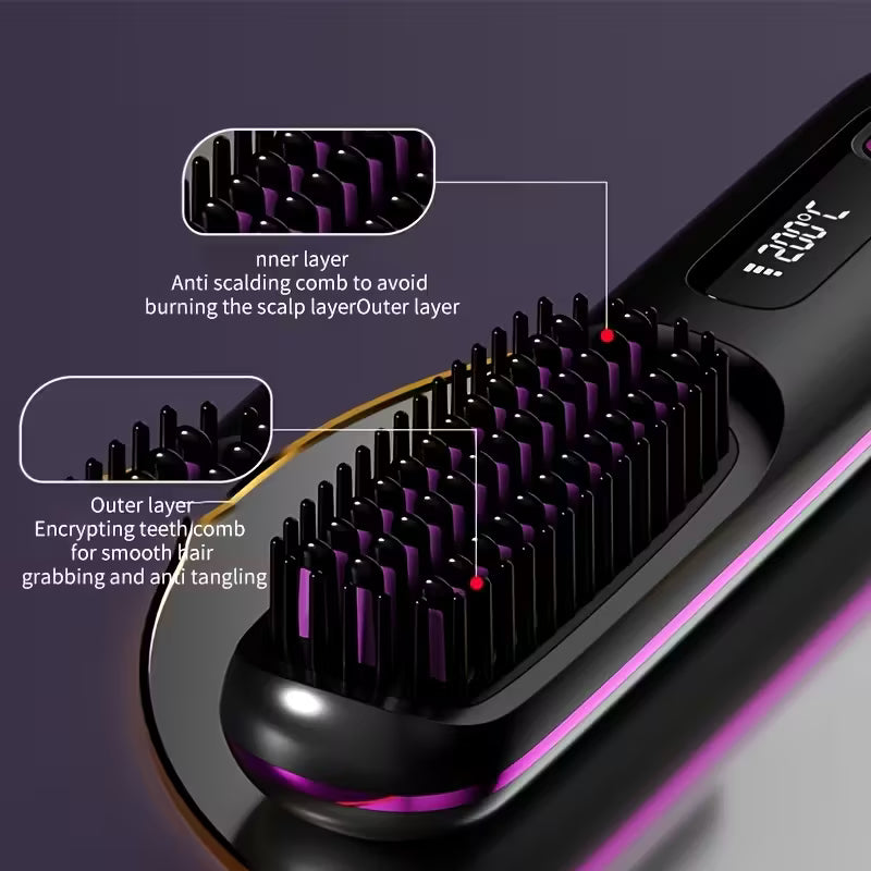 पोर्टेबल वायरलेस कपाल सिधा गर्ने कंघी - USB चार्जिङ ✅