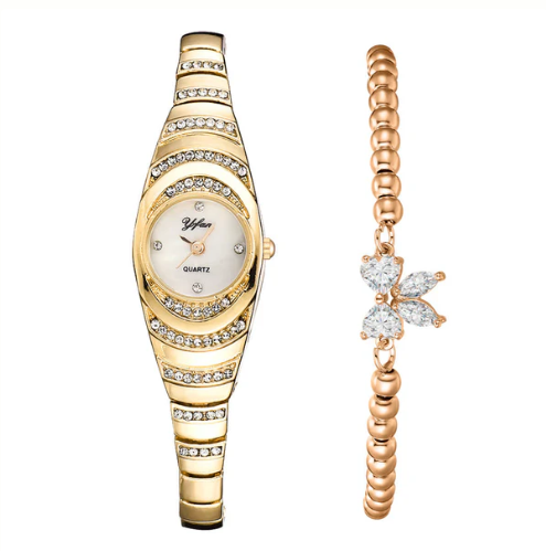 ✨ अद्भुत राइनस्टोन डिजाइन – कंगन र घडीको अनुहारमा चम्किला राइनस्टोनहरूले शैली र आकर्षण थप्छन्, जसले यस घडीलाई दैनिक प्रयोगदेखि औपचारिक अवसरसम्म उपयुक्त बनाउँछ।