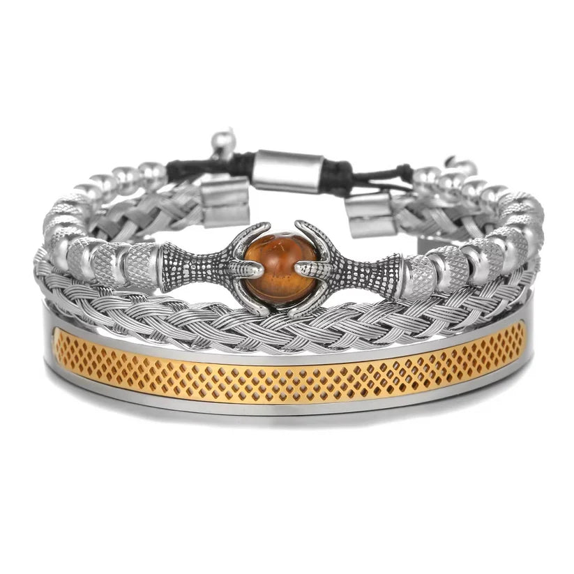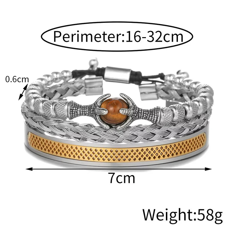 🔥लक्जरी पुरुष ब्रासलेट सेट – स्टेनलेस स्टील हस्तनिर्मित