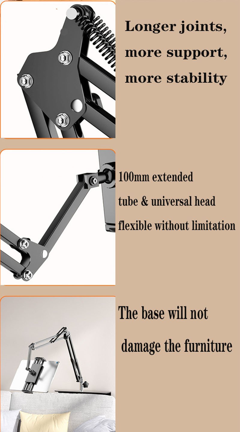 तपाईं यसलाई कुनै पनि खाली ठाउँ वा सतहमा प्रयोग गर्न सक्नुहुन्छ, जस्तै हेडबोर्ड, सोफा वा डेस्क। तपाईं उभिन, बस्न, टेक लगाउन वा सुत्न पनि सक्नुहुन्छ, हातहरू स्वतन्त्र बनाउनुहोस् र यस रोबोटिक आर्म स्ट्यान्डको सुविधा लिनुहोस्।