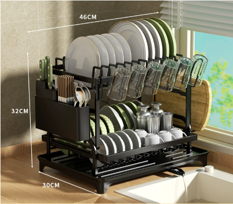२-तह भारी-ड्युटी मेटल डिश ड्राइङ र्‍याक ड्रेनेज बोर्डसहित ✅