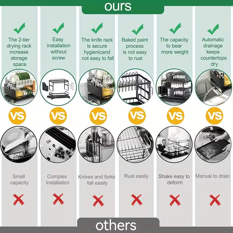 2 tier heavy duty metal dish drying rack with   space saving black kitchen organizer with upper lower shelves utensil holder cup hooks compact dish drainer for small kitchens durable rust resistant design for   dish rack drying dish drying rack over sink kitchen dish drying rack dish drainer rack for kitchen counter dish rack for drying dishes for counter kitchen organizer and storage dish rack for drying dishes dish drainer drying rack dishes Product details 6