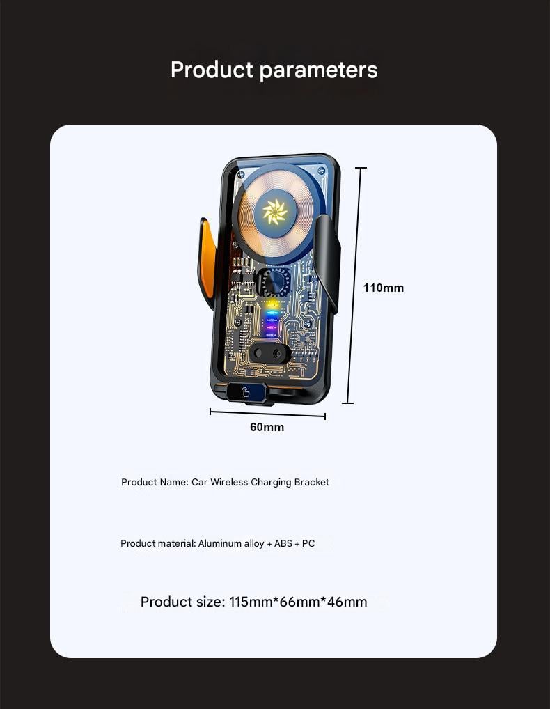 ६६W फास्ट वायरलेस कार चार्जर फोन होल्डर