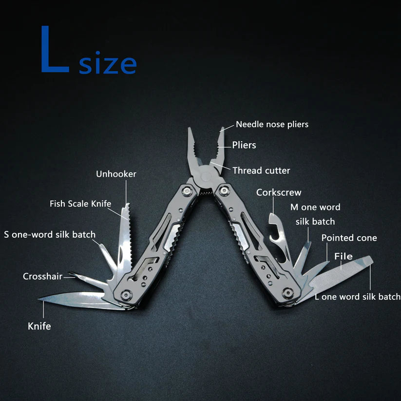 बहुउपयोगी बाहिरी उपकरण – इन-बिल्ट चक्कु, स्क्रू ड्राइभर र प्लायर्स सहित, विभिन्न कामहरू छिटो र सजिलै पूरा गर्न डिजाइन गरिएको। घर, क्याम्पिङ वा आपतकालीन अवस्थामा उत्तम।