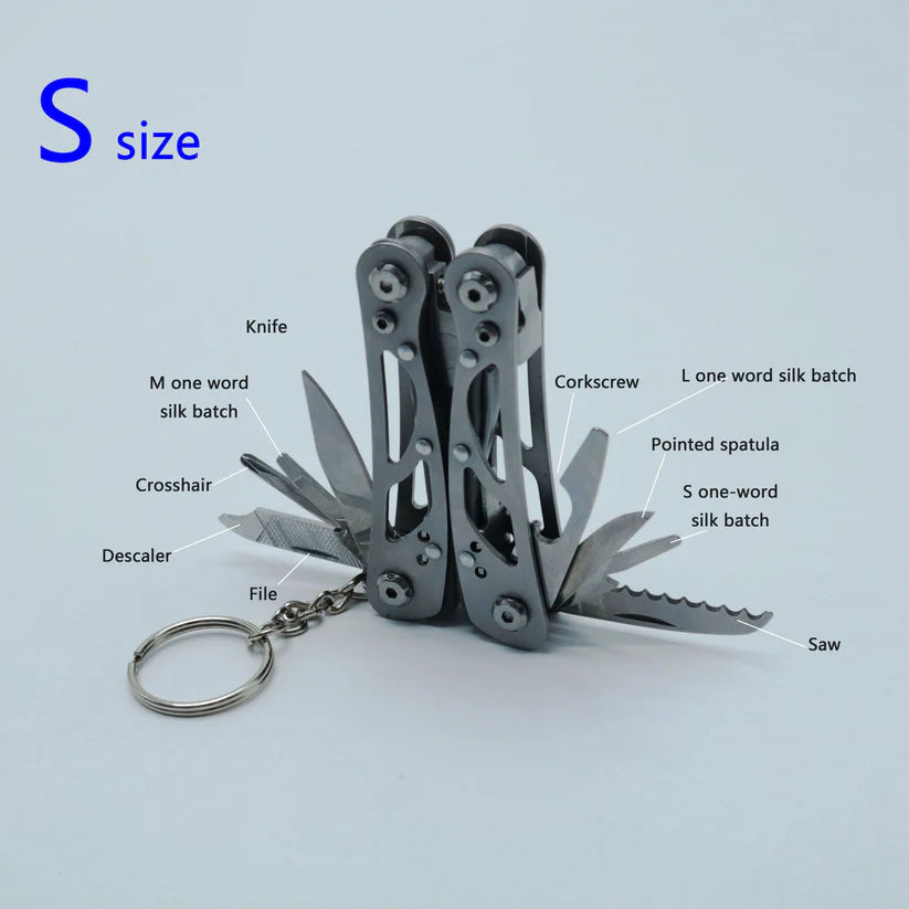 पोर्टेबल फोल्डिङ डिजाइन – तपाईं जहिले पनि आफ्नो झोला वा जेबमा लिएर सजिलै लिएर जान सक्नुहुन्छ। बहुउपयोगी चक्कु, स्क्रू ड्राइभर र प्लायर्स सबै एकै उपकरणमा।