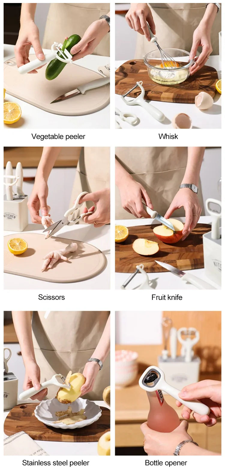सेटमा समावेश: 6 टुक्रा चक्कु (फल/तरकारी, मासु, ब्रेड, सानो यूटिलिटी, आदि)