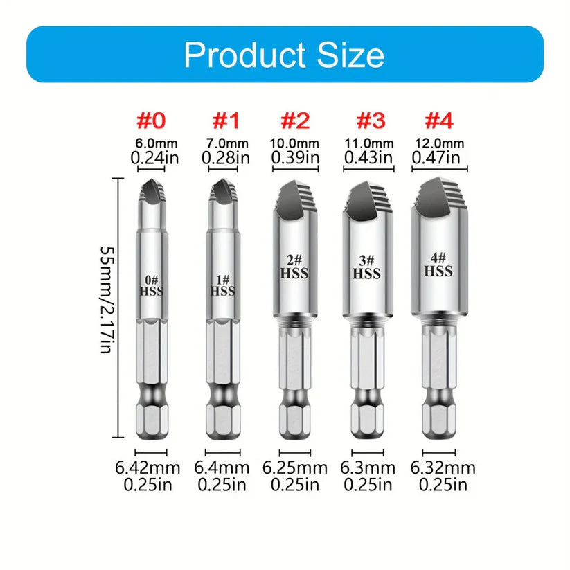 ५ वटा बिग्रिएका स्क्रू निकाल्ने ड्रिलहरूको सेट" ✅